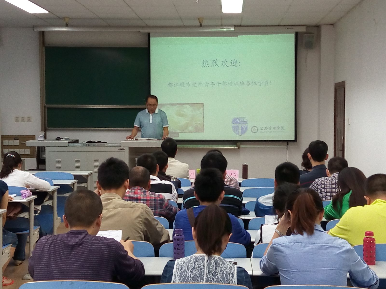 2014年9月22日上午,都江堰市党外干部青年培训班开班典礼在九里校区成功举行。中共都江堰市委党校袁华兵副校长,威廉希尔,英国威廉希尔公司雷叙川副院长,及来自都江堰市各个单位的的39位党外干部学员共同出席了开班典礼。该培训班由中共都江堰市委党校委托,我校干训基地承办。