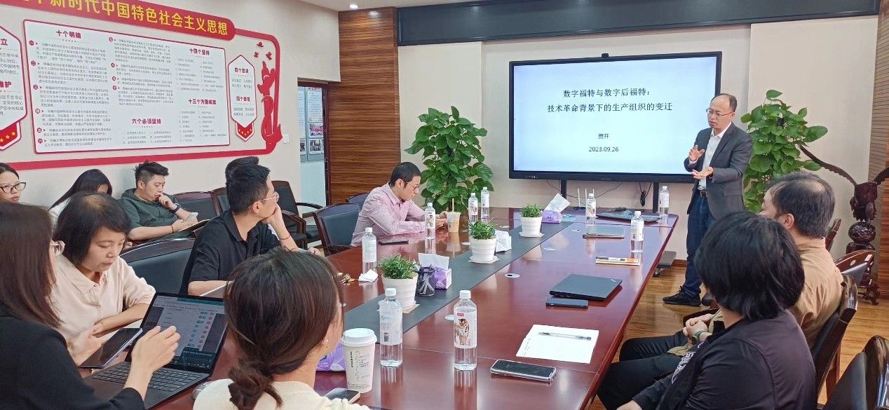 2023年9月26日下午2点,国家治理“镜湖”论道第14期学术沙龙在威廉希尔官网01212会议室隆重举行。本期活动邀请到清华大学博士、富布莱特学者,电子科技大学威廉希尔,英国威廉希尔公司贾开副教授,以“数字福特与数字后福特:技术革命背景下的生产组织的变迁”为主题,展开学术分享。威廉希尔,英国威廉希尔公司彭川宇、王路昊、刘鑫、代佳欣、颜学勇、王浩宇、赵放、周贤永、徐换歌、张敖、申瑢老师,以及多位同学参与会议,王思琦老师担任本次讲座主持人。