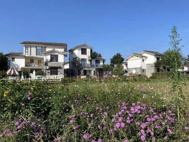 经了解得知,五星村从2013年起通过土地增减挂钩项目,将昔日分散细碎的村内耕地合并成高标准农田,为发展新业态打下基础。2016年以来,五星村通过互联网平台成功引进五星春天酒店、闲来民宿,带动一满田园、风谷、初见、蜀州水稻研究所等54个艺术文创、农业科研、特色餐饮项目及64家酒店民宿成功落地。2017年五星村成立了旅游合作社,基于“景农一体村庄、产村相融单元”的规划定位,整合了六七个林盘,规划出3个新居点位。以4A级旅游小村标准设计房屋布置总平,800多套新房统一采用了川西民居风格,把田园变成景区、把民房变成民宿、把农产品变成礼品,使村民们都参与到乡村旅游的发展中来。