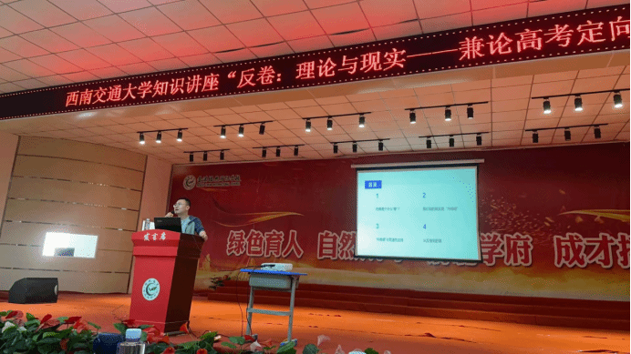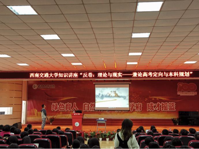 在蓬溪绿然国际学校,王斌老师进行了《反卷:理论与现实——兼论高考定向与本科规划》专题讲座。该校艺体生占比较大,针对这一情况,王斌从“内卷”这一概念的源起出发,结合学生实际情况和喜闻乐见的案例,用“接地气”的语言深入浅出讲解,引发在座同学共鸣。他授以“Fun”与“想象自我”为关键词,鼓励同学们找寻舒展自我的可能性和真正的快乐,学会放大自己的优势,在自己的赛道上跑出最好成绩。在提问环节,薛婧针对同学们有关高考录取、专业设置等问题进行逐一解答,围绕我校的历史沿革、学科特色、办学成果、招生政策等方面为学子们进行详细介绍,欢迎和鼓励广大学子选择williamhill官网。