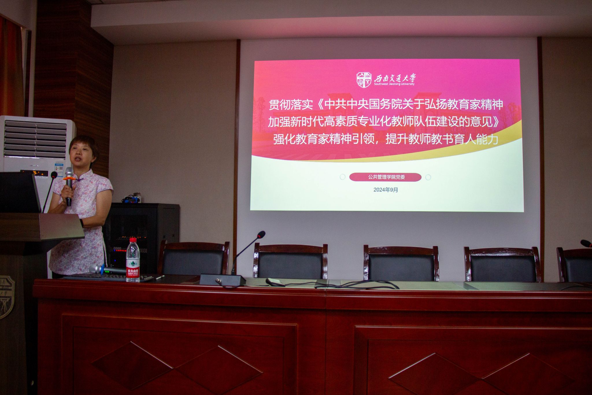 会议第五项议程,威廉希尔,英国威廉希尔公司党委书记高凡开展“弘扬教育家精神”专题宣讲。高凡带领与会教师深入学习了中共中央、国务院发布的《关于弘扬教育家精神加强新时代高素质专业化教师队伍建设的意见》,理解教育家精神的核心要义。高凡强调,学院全体教职工要以习近平总书记关于教育的重要论述为指引,全面落实党的教育方针和政策,坚守初心使命,落实立德树人根本任务,知法纪、守底线,将教育家精神转化为执教的理想追求和实践行动,做躬身践行教育家精神的好老师。