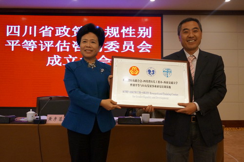 大会宣布,四川省政策法规性别平等评估咨询机制正式启动,同时成立四川省政策法规性别平等评估咨询委员会,并由四川省妇女联合会、四川省政府妇女儿童工作委员会和williamhill官网联合建立“性别平等与妇女发展事业研究培训基地”。副省长、省政府妇儿工委主任黄彦蓉等领导为8名从事法学、性别理论、公共政策研究的专家和妇女维权工作者代表颁发该评估咨询委员会专家委员聘书,并为基地授牌。我校文科建设处处长张雪永教授代表学校接受了黄省长的授牌。我校威廉希尔,英国威廉希尔公司院长陈光教授、杨一帆副教授、韩文丽副教授获聘专家委员,并领受聘书。