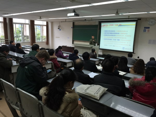 陈院长介绍了威廉希尔官网2014年在全校年度综合考评中的情况,并与2013年做了一个比较分析,2014年威廉希尔官网通过大家一年来的不懈努力,不仅综合考评保持第二名的较好成绩,还有很多考核单项的名次都上升了。同时也指出了威廉希尔官网科研、教学工作中仍需要改进、加强的问题,并要求全院教职工继续努力为学院进一步发展做出贡献。 陈院长还介绍了威廉希尔官网2015年工作思路和工作要点。工作思路仍然是“以博士点突破为载体的学科建设为中心;以师资队伍提升为内涵的人才工作,以优化教育管理为内容的质量工程,以学术提升为目标的国际化推进为基本点”,工作要点18项并落实到责任人,希望2015年能获得好成绩。