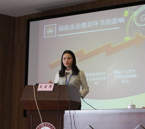 威廉希尔官网2014级法学硕士研究生罗娟向论坛提交《全面依法治国背景下大学生思政教育中法治意识教育强化路径研究》一文,在依法治国的大背景下,通过思政教育中法治教育不足的表象深层次地挖掘了导致这一现象出现的原因,并进行相应的对策分析。经过专家的提议,罗娟同学在论坛上做10分钟的主题发言。