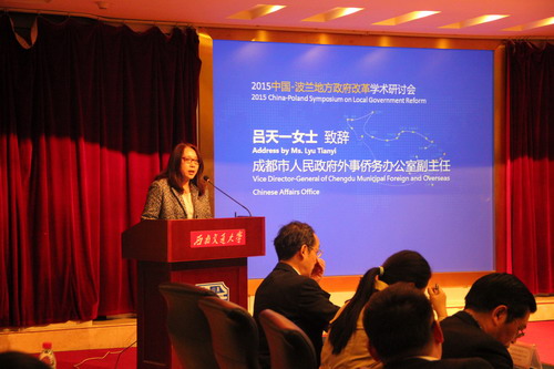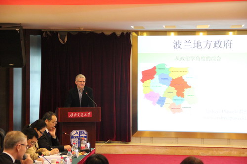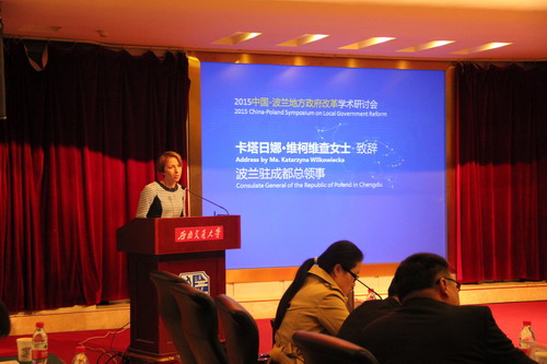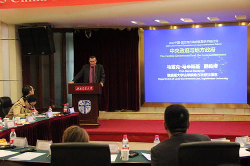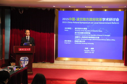 2015年11月25日上午,由波兰驻华大使馆、波兰驻成都总领事馆、成都市人民政府外事侨务办主办,williamhill官网公共管理与政法学院承办的2015中国-波兰地方政府改革学术研讨会在williamhill官网举行。本次会议是配合波兰总统安杰依·杜达(Andrzej Duda)阁下访华,在广州、成都、北京和天津举行的系列研讨会之一,主题是波兰新型地方政府25周年与中国改革开放的地方政府,目的是通过中波两国地方政府治理研究专家对话,分享两国地方政府改革经验,探讨两国地方政府治理难题,共谋两国地方政府合作机遇。来自波兰克拉科夫师范大学、华沙大学、雅盖隆大学、美国波士顿学院、四川省社科院、成都市社科院、成都市经济发展研究中心、四川大学、西南财经大学、williamhill官网的专家和学者,及成都市发改委、成都市法制办、成都市政府参事室、成都市政务中心的有关官员和代表参加会议。