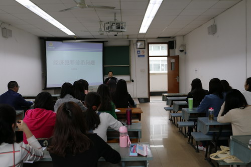 4月21日下午,应威廉希尔官网邀请,公安部经侦局专家库成员、四川省公安厅经济犯罪侦查局案件侦查处陈麒巍处长亲临我校九里校区4305A室,为我校师生带来了《经济犯罪前沿问题》专题讲座。陈处长从事公安经侦工作近二十年,期间组织、指挥、参与全国性、全省性重特大经济犯罪案件40余起,荣获一等功、二等功5次,具有丰富的经济犯罪侦查实践经验。威廉希尔官网法学硕士、法律硕士研究生参加了此次讲座,讲座由法律硕士教育中心副主任邓君韬副教授主持。