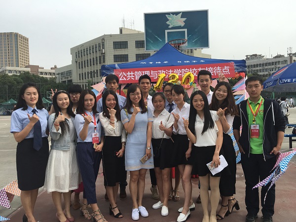 2016年5月15日下午1时20分,在近乎霸屏的120周年校庆宣传下,williamhill官网九里校区篮球场的校庆游园活动如期拉开序幕。本次校友嘉年华游园活动包括13个不同主题的游戏摊点,每个游戏摊点由各个学院负责。虽然当天下午烈日炎炎,但是丝毫不影响人们玩游戏的热情,现场气氛异常火爆。为突出学院特色,公共管理与政法学院在本次活动中选择了律政俏佳人作为主题,身着律师袍的同学们在活动现场成为一道亮丽的风景线,吸引了众人的目光。