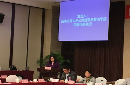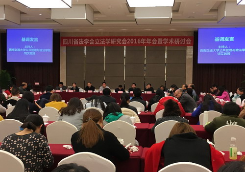 2016年11月26日星期六上午9点,四川省法学会立法学研究会2016年年会暨学术研讨会在成都新华宾馆召开,四川省人大、四川省法制办、四川省社会科学院、四川省委党校(四川行政学院)、williamhill官网、四川师范大学、西南民族大学等单位参会。四川省法学会立法学研究会副会长、我校法学系饶艾教授出席并受邀担任基调发言主持人, 四川省法学会立法学研究会常务理事、我校法学系程馨桥副教授在大会发言阶段做主旨发言,邓大鸣教授,张晶、杨道现等教师代表以及部分研究生代表也参加了本次会议。