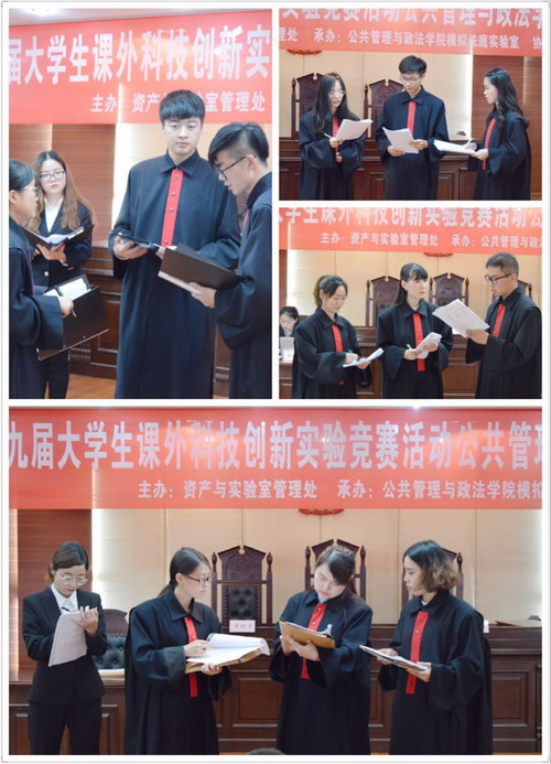 2017年6月10日下午1:30,由学校资产与实验室管理处主办,公共管理与政法学院模拟法庭实验室承办,学院团委协办的williamhill官网第九届大学生课外科技创新实验竞赛活动“模拟法庭竞赛”决赛在X5403模拟法庭实验室拉开帷幕。