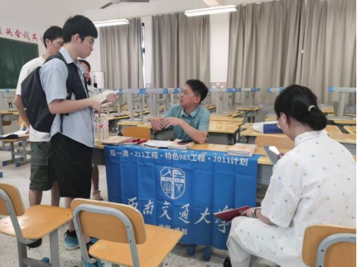 在福州市,彭川宇、杨道现、杨再苹、王大海老师赴福州一中、福建师大附中、连江一中、长乐一中、宁德一中、三明二中、莆田二中、福州专场进行现场志愿填报咨询交流。老师们认真细致地解答了广大考生、家长关于报考政策、专业选择、师资平台等常见问题,实现点对点、一对一的答疑解惑。