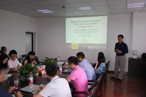 2018年6月21日,美国爱荷华大学城市与区域规划学院教授钱海峰博士应邀来威廉希尔官网交流访问,并做了题目为《区域发展视野中的政策分析:以美国为例》的精彩报告。