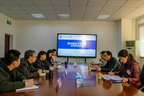 温朋科长为与会人员详细讲解了2019年本科生招生计划数、招生计划类别、招生宣传等工作,并就学院2019年招生工作中的相关问题与大家进行了交流讨论。彭黎明科长对学院就业指导工作表示了肯定,希望学院能够基于就业指导工作方案,为学生做好就业引导,扩展学生发展空间。