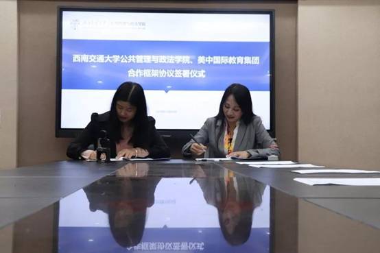 2019年10月24日14:00,威廉希尔官网与美中国际教育集团于我校九里校区01313举行合作框架签署仪式。美中国际教育集团副总经理谭静女士、威廉希尔官网党委书记高凡教授、党委余小英副书记等嘉宾参加本次活动。