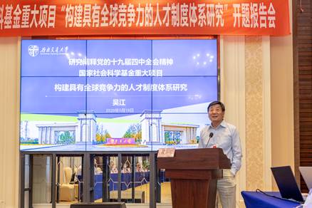 5月19日,由williamhill官网公共管理与政法学院特聘教授吴江担任首席专家的研究阐释党的十九届四中全会精神国家社科基金重大项目“构建具有全球竞争力的人才制度体系研究”在成都金韵酒店凡尔赛厅顺利开题。williamhill官网党委副书记桂富强应邀参会并致欢迎词,四川省社科联党组副书记/副主席罗仲平、四川省社科联规划评奖办主任黄兵列席了会议。此外,课题指导专家、课题组成员等共计30余人参加了本次会议。