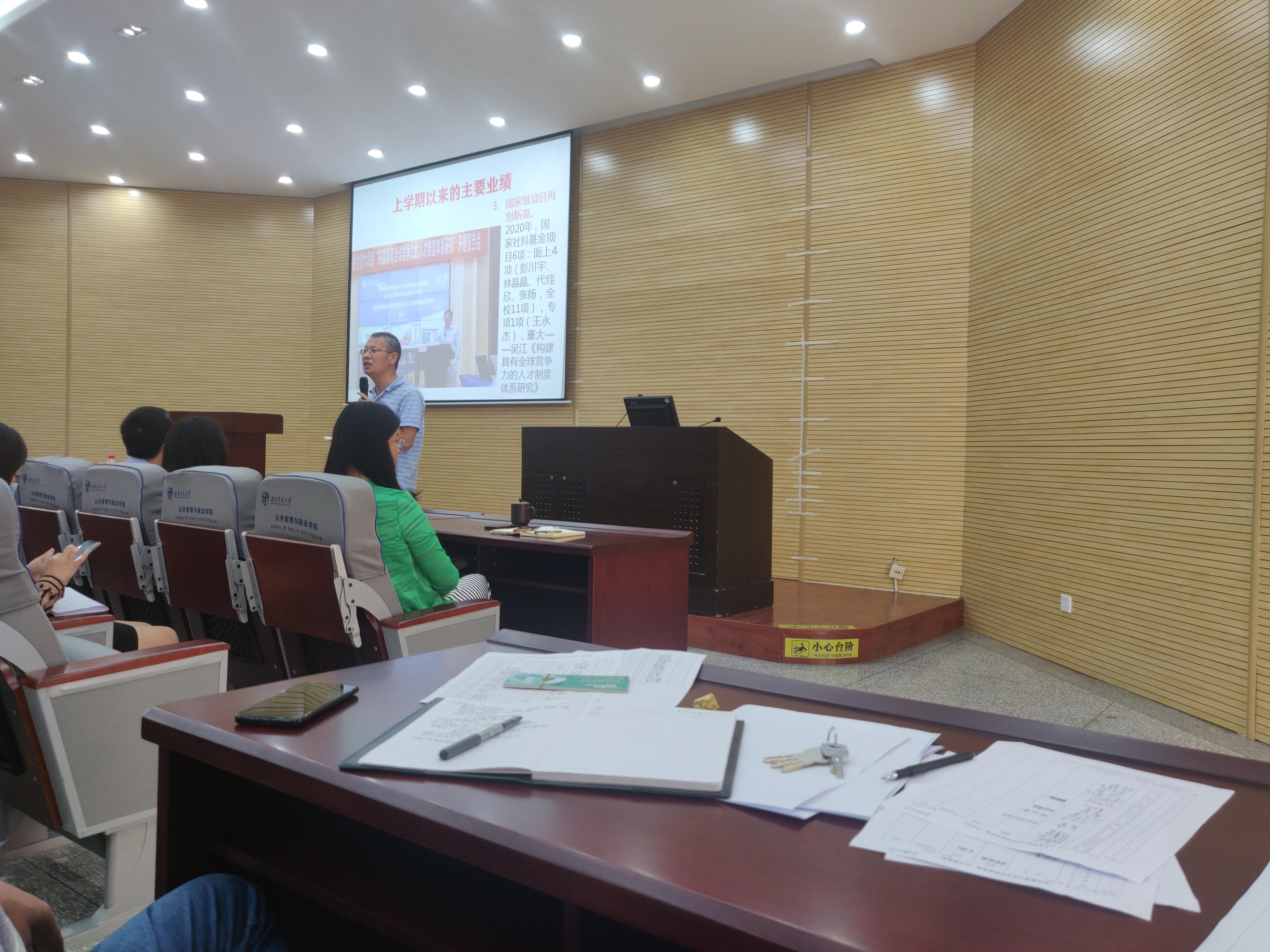 会议第四项,院长王永杰首先对学校中层领导干部会议会议精神向全院教职工进行了传达,随后就上半年的主要工作成效做了简要介绍,对下班年的工作安排作了整体部署。王院长重点强调了学院上半年在国家级项目的立项数量上再创新高,此外,学院在教育部第八届高校科研优秀成果奖、省级基地建设、教育部人文社科项目立项、立德树人先进表彰和抗击疫情方面都取得了一定成绩。王院长指出,下半年学院的重点工作是公共管理一级学科博士点申建,同时还要兼顾公共管理和法学学科十四五规划制定、第五轮学科评估、党委巡察、申请校院两级本科教学质量保障联动试点等工作。