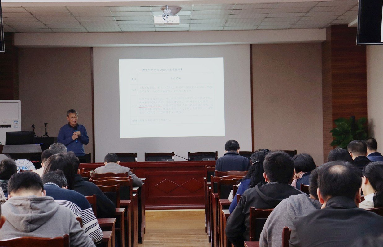 随后,李华强副院长汇报研究生招生和研究生培养方案修订相关情况及工作安排。根据研究生招生考试情况,他针对先前制度的不足并提出了个人观点和解决方案。随后,他又分别从课程设计、学术活动、学分要求、论文考核等多方面对研究生培养方案改革的实施情况做出进一步地阐释。李华强副院长汇报结束后,学院对2020年度考核工作优秀部门及个人进行了表彰,颁发了奖状。