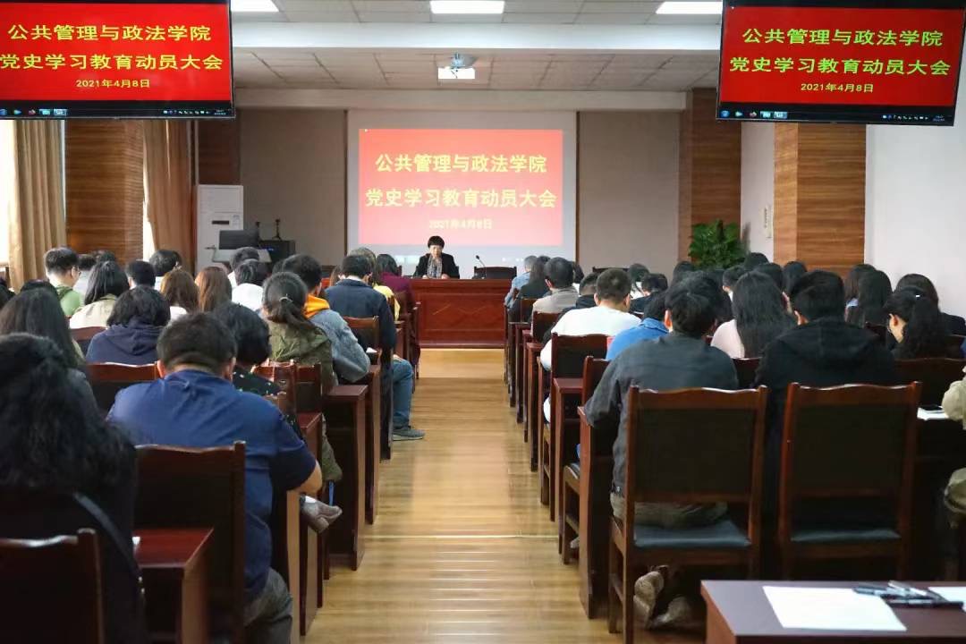 4月8日下午,williamhill官网公共管理与政法学院召开全院党史学习教育动员大会,学习贯彻习近平总书记在党史学习教育动员大会上的重要讲话精神,认真落实党中央决策部署和教育部党组、四川省委和学校党委工作要求,对学院开展党史学习教育进行全面动员和安排部署。学院党委书记高凡作动员讲话,院长王永杰主持会议。全院党委委员、纪委委员、全体教职工、学生党支部代表参加会议。