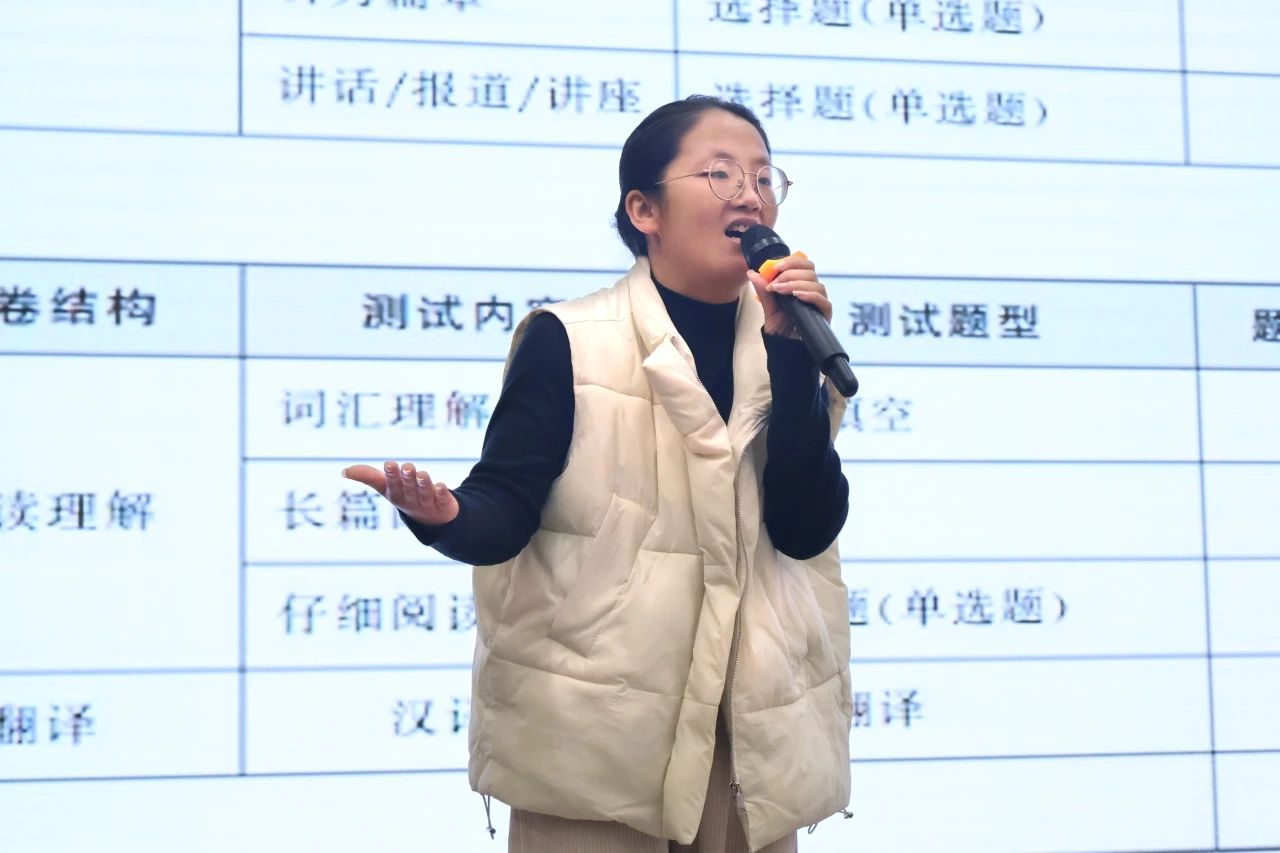 接下来,李老师介绍了“同义替换”这一重要技巧,并为大家列举了该技巧在不同题型中的应用。在长篇阅读部分,同学们要把选项与原文段落一一对应;在仔细阅读部分,同学们要将题目精准定位到原文,在对比选项时仔细斟酌;在听力部分,李老师为大家介绍了选项中常见的同义替换情况,提醒同学们在听力过程中多加留意;在翻译部分,李老师为大家列出评分标准,针对单词翻译问题讲解了同义替换方法的具体应用。