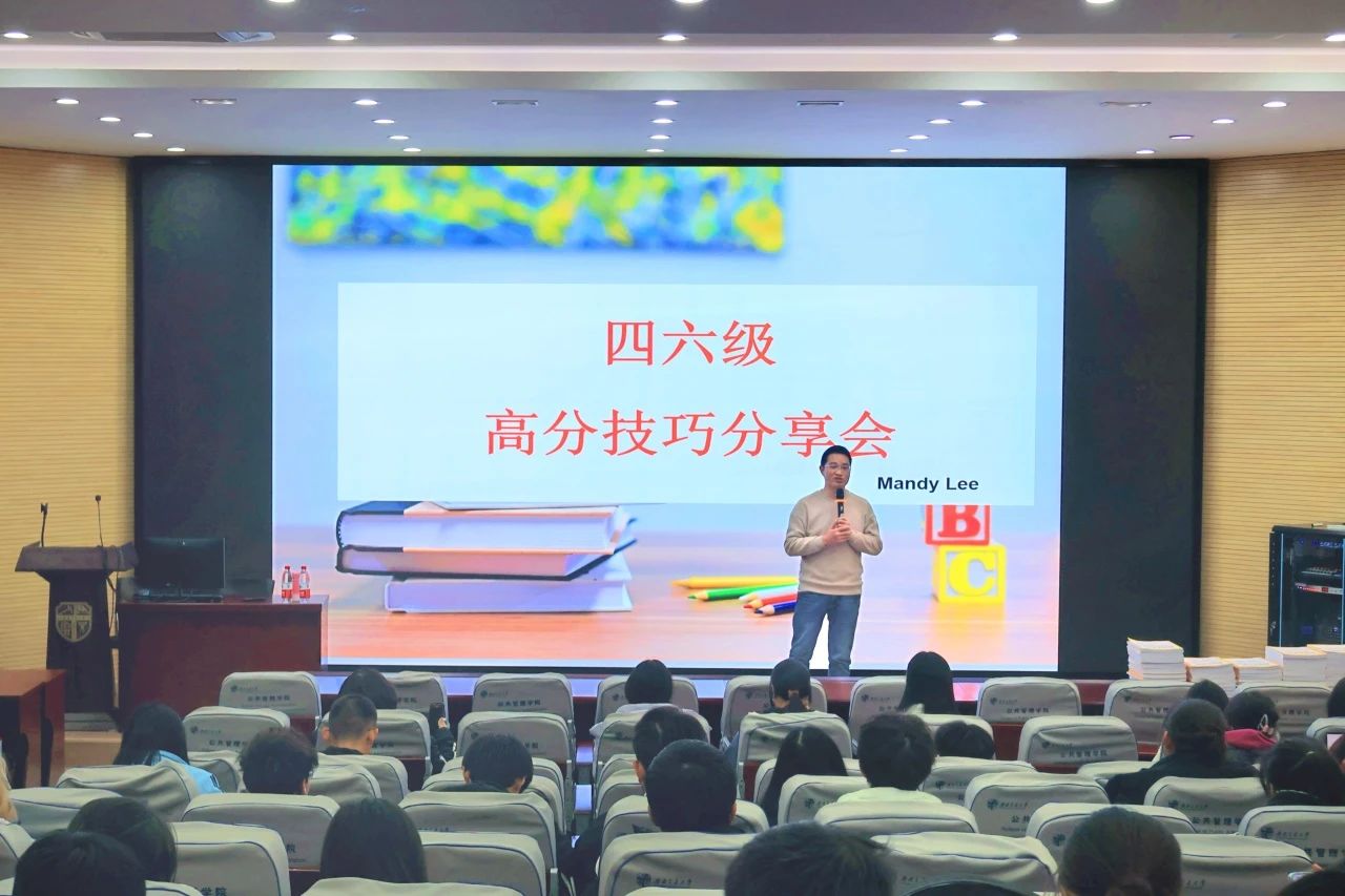 为帮助同学们更好地应对四级考试,提升应试技巧,增强备考信心,威廉希尔,英国威廉希尔公司于2024年12月5日下午3点30分在零号教学楼0231教室开展了四级考前技巧公开课,本次公开课邀请到了成都新航道李月星老师为大家传授经验。