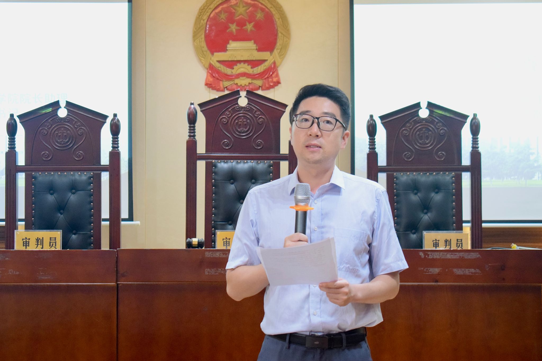 随后,刘鑫教授向青白江区人民法院长期以来在案例支持、专业评审等方面的大力协助致以诚挚感谢。他鼓励参赛选手们把握与法官们零距离交流的机会,把竞赛当作汲取知识的课堂,无论最终成绩如何,站在法庭的经历就是自身学习道路上的宝贵财富,希望通过庭审专家专业、严谨的点评指导,同学们都能在竞赛中找准差距、明晰方向,实现从“书本知识”到“实务能力”的跨越。
