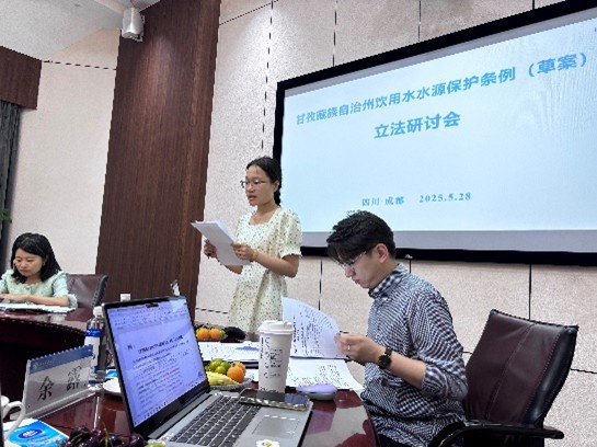 为进一步完善《甘孜藏族自治州饮用水水源保护条例(草案)》,推动地方生态环境及民生领域立法科学化、民主化、法治化,2025年5月28日,《甘孜藏族自治州饮用水水源保护条例(草案)》立法研讨会在williamhill官网学术交流中心召开。甘孜州人大法制委主任委员付林、副主任委员陈昊,州人大常委会法工委主任胥晓莉出席会议,州生态环境局、州水利局、北京君合(成都)律师事务所等单位代表参加会议。四川省立法专家、学院教师邓君韬、杨道现以及法律、法学硕士研究生余露、张腾宇、刘星宇参会,师生团队就条例草案征求意见情况及修改过程作专题汇报,听取与会代表的意见建议并参与研讨、现场改稿。