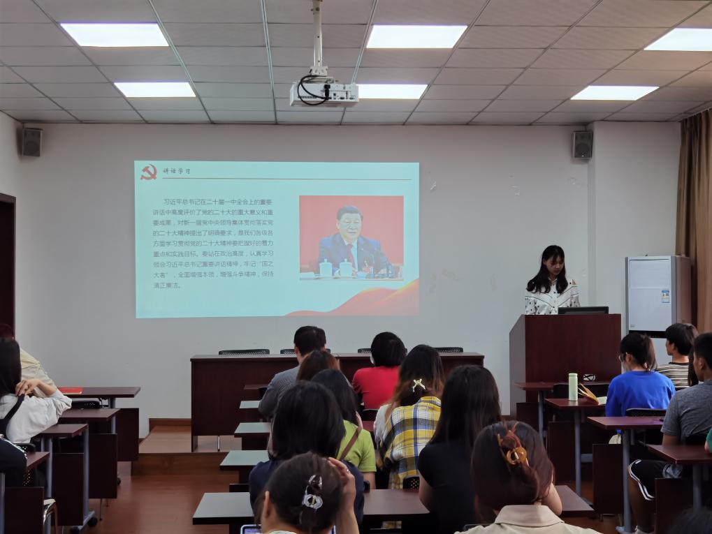 毛雅宣同志结合回顾二十大报告的内容,聚焦近期两会热点问题,从基层治理建设等社会重点议题展开,联系生活实际以及专业知识,引导大家从贴近生活、贴近实际的案例中感受新时代青年学子的责任与担当,以及领悟作为学生党员,应如何发挥好先锋模范带头作用,引领带动身边的同学主动关心社会。