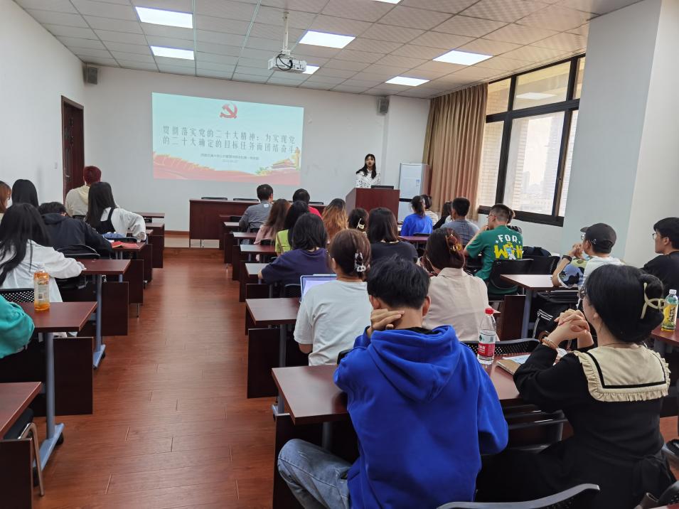 2023年4月27日下午16:00,威廉希尔,英国威廉希尔公司本科第一党支部在九里零号教学楼01104顺利举办“贯彻落实党的二十大精神:为实现党的二十大确定的目标任务而团结奋斗”主题党日活动。本次主题活动由杨溢同志作为领学人,组织支部成员紧密围绕二十大精神以及习近平总书记在二十届一中全会上的讲话等重要内容开展专题学习;并由支部成员围绕所学进行讨论,分享心得体会。