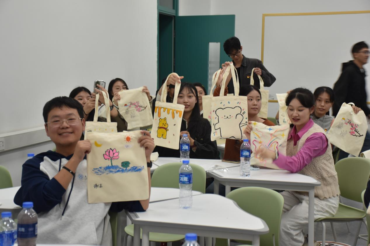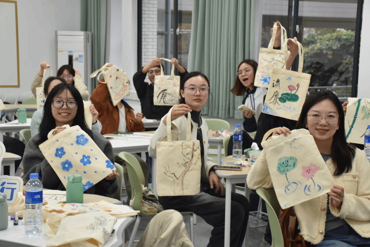 紧接着,三校师生共同进行了一场别开生面的“击鼓传花”知识问答游戏,同学们在紧张刺激的氛围中学习廉洁知识,增强了廉洁意识。最后,参与者们通过手绘帆布包活动,将廉洁文化融入艺术创作,亲手绘制了与“廉洁”相关的作品,以此作为对廉洁文化的深刻理解和记忆。