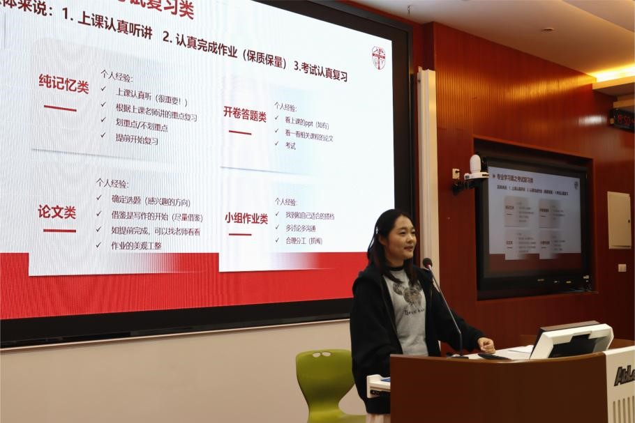 2024年10月11日晚,williamhill官网本科公管党支部于九里校区四号教学楼J4105教室举行了党员代表专业学习经验分享会,支部成员及低年级学生共计70名学生到场参与。本次会议由支部两位保研成功的优秀中共党员华榕、阎梓仪进行专业经验分享。这不仅是一次专业学习的交流,也是党支部活动的一部分,旨在通过优秀党员的示范作用,激励新生树立远大理想,明确学习方向,规范学习行为。