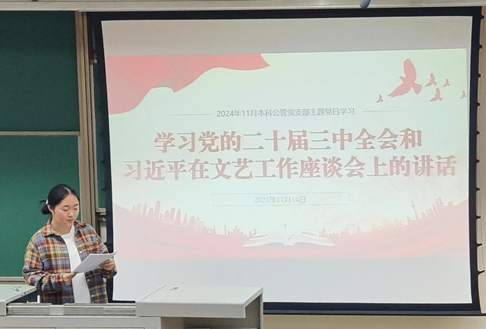 本科公管党支部书记华榕同志在带领支部党员进行集体学习时强调,作为大学生,我们要带着使命去学习,带着责任去思考,带着问题去探索。深入理解并把握习近平总书记重要讲话中的丰富内涵、核心要义以及实践要求,将思想和行动与习近平总书记的重要讲话精神和党中央的决策部署保持一致,以创新的精神积极投入到学习和实践中,为实现改革任务贡献自己的智慧和力量。