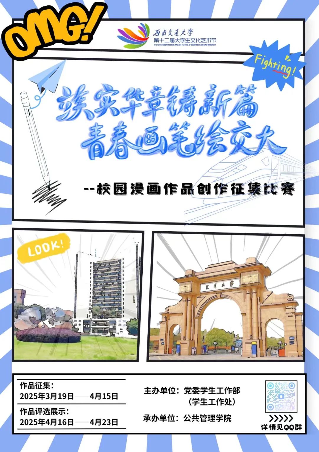 为贯彻落实党的二十大精神和习近平总书记关于教育的重要论述,围绕立德树人根本任务,充分发挥高校美育育人功能,扎实推进校园文化建设,通过漫画形式挖掘校史故事、校友风采与交大精神,由党委学生工作部(学生工作处)主办,威廉希尔,英国威廉希尔公司承办的“竢实华章铸新篇,青春笔画绘交大”校园漫画作品创作征集活动正式开启。