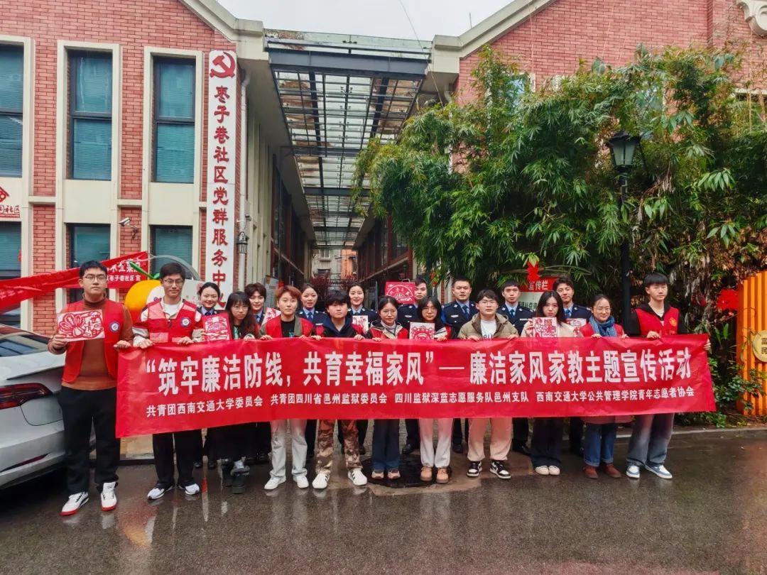 为深入学习贯彻党的二十大精神,全面落实习近平总书记关于青年工作的重要思想和关于志愿服务的重要指示精神,进一步弘扬雷锋精神及“奉献、友爱、互助、进步”的志愿精神,积极引导公管学子在社会实践与志愿服务的大课堂中受教育、长才干、作贡献,正值2025年3月5日“学雷锋”日,威廉希尔,英国威廉希尔公司青年志愿者协会联合四川监狱深蓝志愿服务队邑州支队在成都市金牛区枣子巷社区内举办“筑牢廉洁防线,共育幸福家风”主题宣传活动,以实际行动弘扬廉洁文化、普及法律知识。