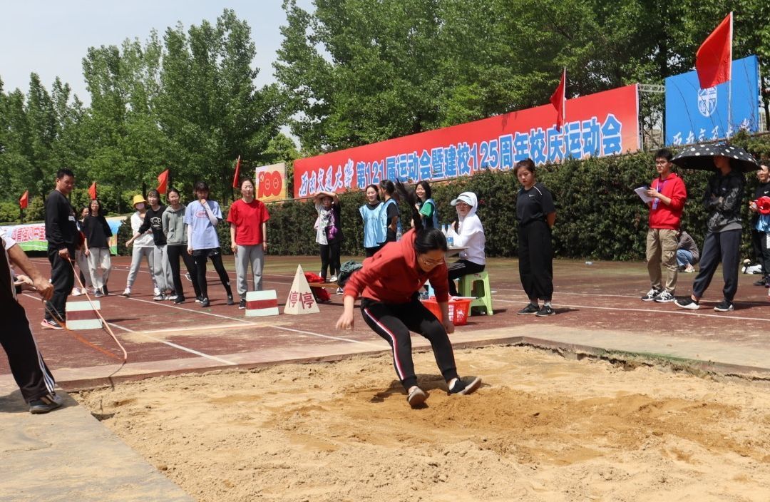 下午2:30,在观众们的热烈欢呼声,女子立定三级跳远比赛在运动场的沙坑处进行,威廉希尔官网学子杨添天和严爱玲两位运动员将和众多的参赛者一起参与最后的角逐。