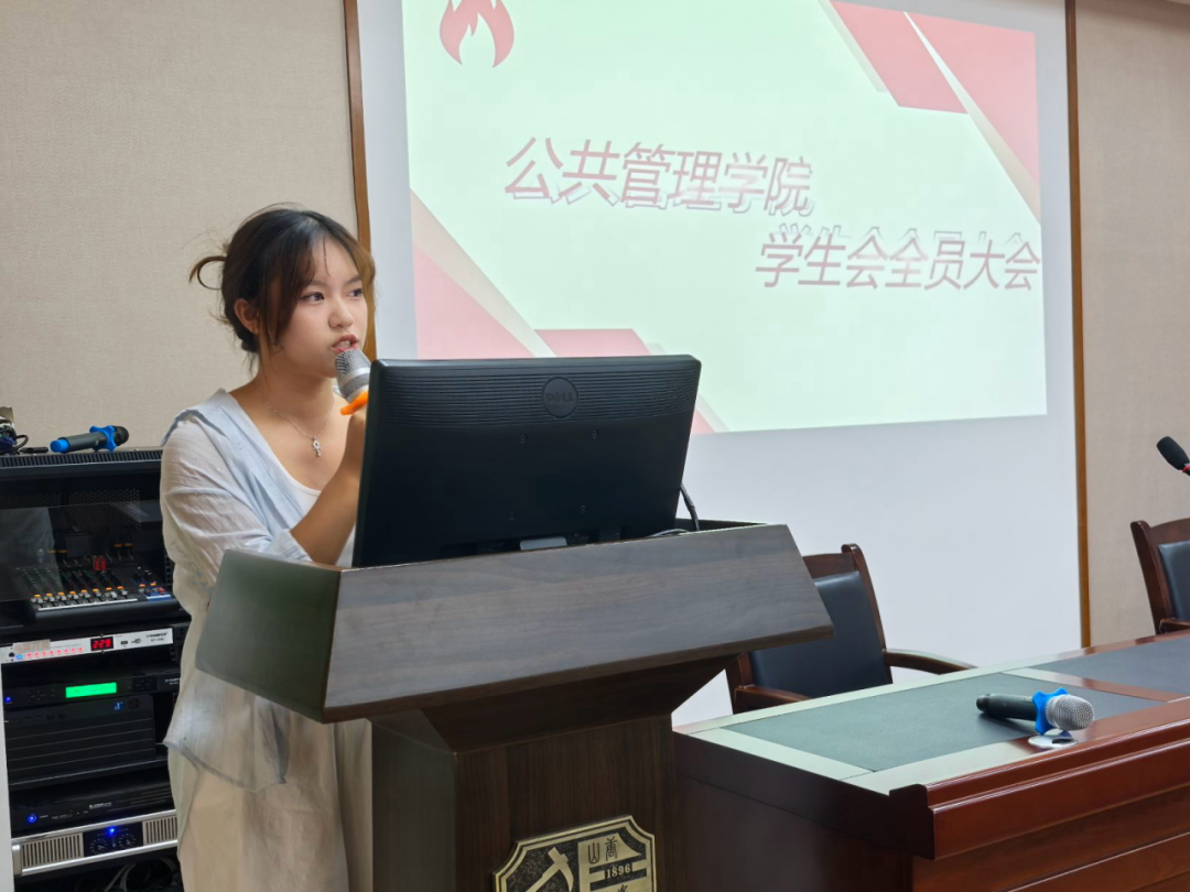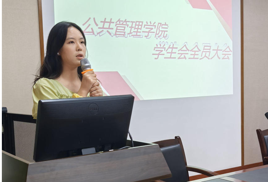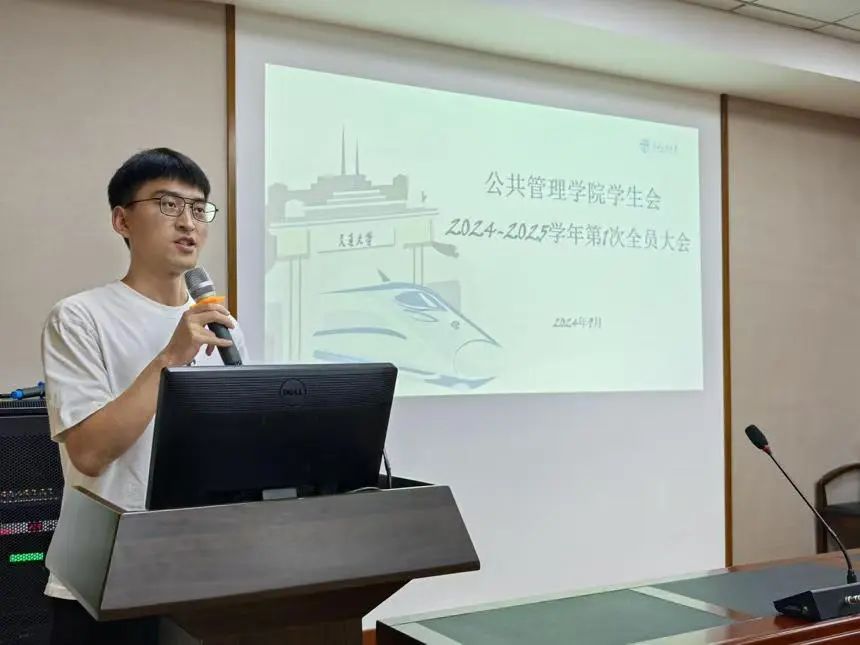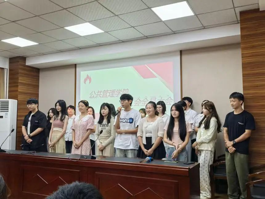 全员大会在主席团成员黎烨炜的深情致辞中拉开序幕,他围绕学生会的宗旨与愿景,为全体成员描绘了充实精彩的大学生活图景,同时讲述了学生会连续多届取得的校级“十佳”学生会等骄人成绩。随后,主席团成员刘佳昕用三个温馨的故事展现了学生会成员间深厚的情谊与务实的工作态度,让新成员们深切感受到学生会大家庭的温暖与力量。主席团成员胡书奕与闫佳琪则分别就各自负责部门与工作作出详细的工作安排,并期望各位同学在未来的学习学业和学生工作中能够形成过硬的专业本领,提升个人综合能力。
