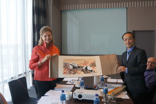 AT the invitation of The United Nations development program- Asia Pacific regional center(UNDP-APRC),president Chen Guang headed a delegation to visit office of The United Nations development program- Asia Pacific regional. President Chen Guang express the warm welcome of our academy to Madam Caitlin (the chairman of APRC) and actively support the good wish of landing the project “GEPMI” in Chengdu, also, he introduced the progress of the prophase preparatory work. Madam Caitlin represented The United Nations development program showing gratitude to our academy for our positive contribution in promoting women`s global development and gender fair business, she highly admired our academy for the meticulous preparation of landing the project “GEPMI” in Chengdu, also she promised Asia Pacific regional office that they would try their best to support the promotion of the project “GEPMI” in China or even in all the developing Asian countries. In the subsequent work for discussion, the two sides reached agreements in some important key issues, such as medium and long term cooperation, also they settled down some details about the project such as curriculum provision, teacher`s team, resource allocation.