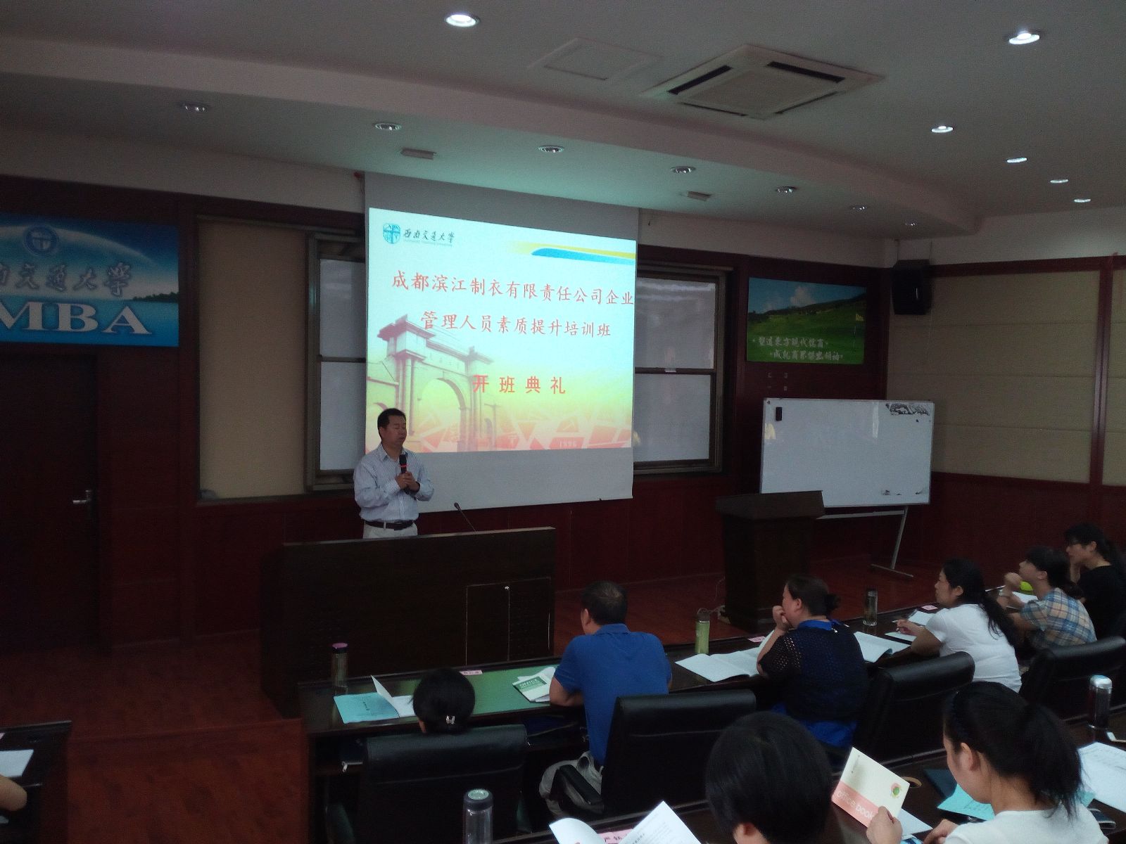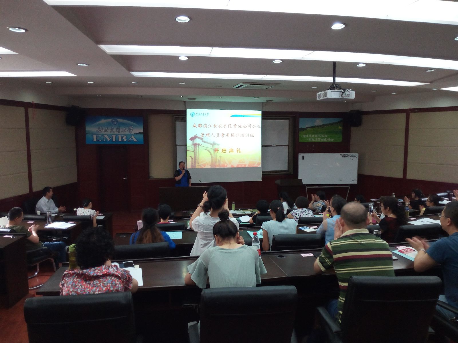 2016年6月13日,由我校干训基地承办的成都滨江制衣有限责任公司企业管理人员素质提升专题培训班(第一期)在我校顺利开班。williamhill官网公共管理与政法学院副院长雷叙川、成都女子监狱副监狱长宁晓英及来自成都滨江制衣有限责任公司的60名参训学员共同出席了开班典礼。