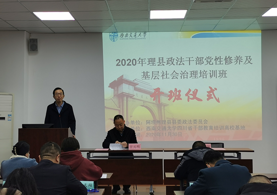 2020年11月30日,2020年理县政法干部党性修养及基层社会治理培训班在williamhill官网九里校区顺利开班。本次培训班是由阿坝州理县委政法委员会主办,williamhill官网四川省干部教育培训高校基地承办。主办方对本次培训高度重视,理县委常委、理县政法委书记甘元明出席开班仪式并做动员讲话;williamhill官网公共管理与政法学院副院长李华强教授致欢迎词。本次培训共计6天,培训主题围绕党的十九届五中全会精神解读、基层社会治理、突发事件与应急管理、职务犯罪风险等内容开展。
