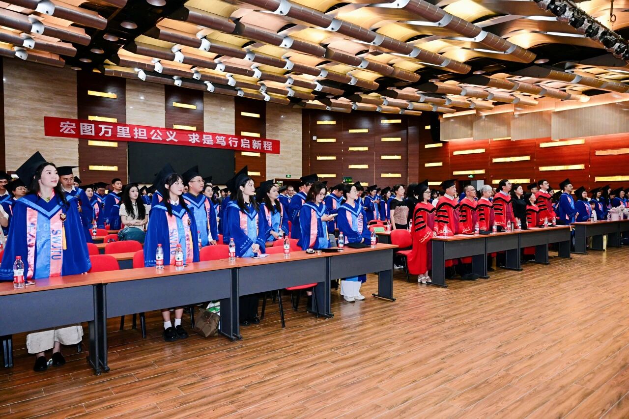 仪式开篇,全体师生肃立,国歌激昂。旋律传承岁月,锚定公管学子家国担当,“公行天下,管济四海” 与家国发展同频,使命在肩,新途启幕。